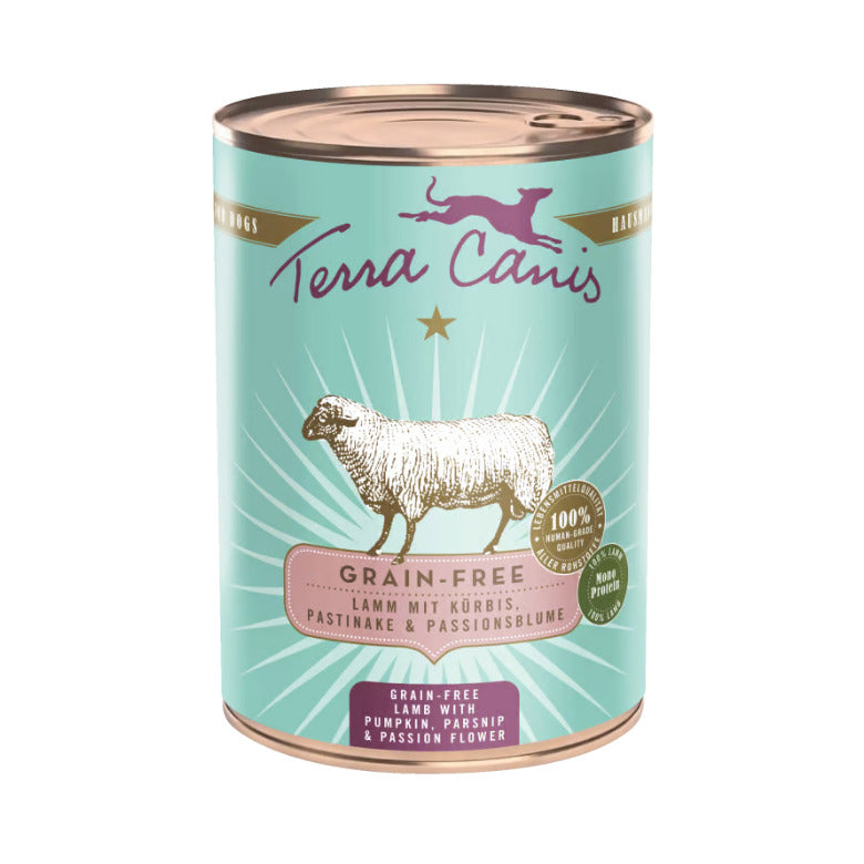 Los menús GRAIN-FREE de Terra Canis presentan una alta proporción de carne complementada con frutas, verduras y hierbas saludables y ricas en fibras. Los aditivos como el alga marina, la arcilla mineral, el polen de flor, la sal de los Andes y la levadura de cerveza proporcionan numerosas vitaminas y minerales naturales. La harina de coco incluida, sin gluten ni colesterol y de fácil digestión, es una auténtica «harina milagrosa». Está considerada como una de las fuentes de fibra más abundantes, es suave para el intestino e incluye aminoácidos importantes. Con su alto contenido en ácidos grasos Omega 3, el aceite de colza culmina a la perfección los menús GRAIN-FREE. Estos menús son adecuados para todos los perros sanos cuyos dueños apuestan por una alimentación GRAIN-FREE y adecuada a su especie. Especialmente adecuado para perros con intolerancias a los cereales y para aquellos que, por motivos médicos, deben alimentarse GRAIN-FREE.