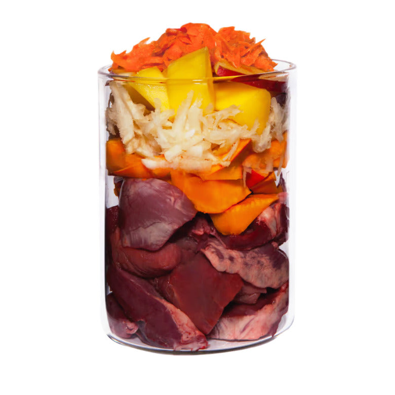 Corazón de cordero (42 %), pulmón de cordero (12 %), zanahoria, calabaza (12 %), manzana, chirivia (8 %), melocoton, aceite de colza, harina de coco, altramuz dulce*, levadura de cerveza* , concha de ostra*, flor de la pasión (0,4%), albahaca*, diente de león*, salvia* (0,2 %), arcilla mineral*, sal de los Andes, polen de flor*, alga marina *, minerales *seco