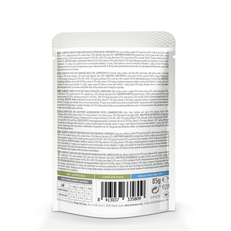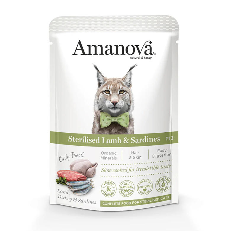 Pouch AMANOVA Cat - Esterilizado Cordero y Sardina 85 gr