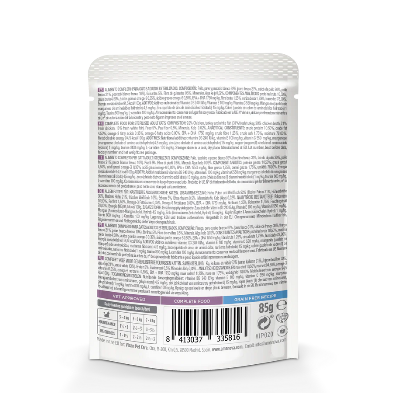 Pouch AMANOVA Cat - Esterilizado Pescado y Pavo 85 gr