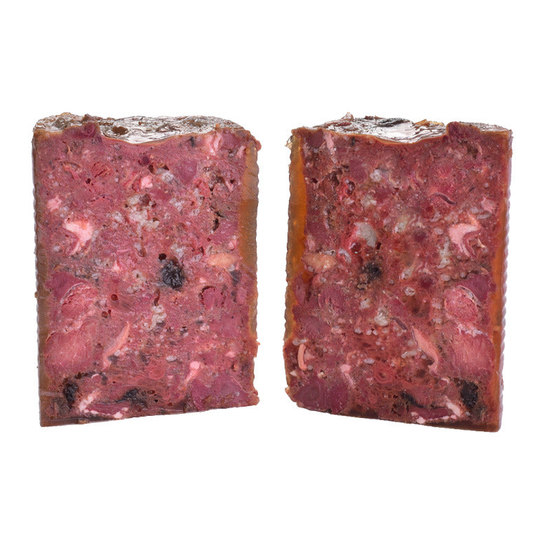 Paté sin cereales con gran contenido de carne para perros adultos.