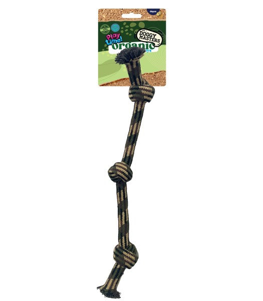 Cuerda 3 Nudos de la línea Organics de Doggy Masters es el compañero ideal para los juegos de lanzar, tirar y morder. Fabricada con fibras naturales de yute y cáñamo, es resistente, ecológica y perfecta para cuidar tanto de tu perro como del planeta.