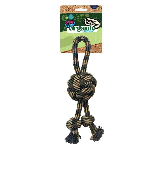 Cuerda Bola 2 Nudos de la línea Organics de Doggy Masters es el compañero ideal para los juegos de lanzar, tirar y morder. Fabricada con fibras naturales de yute y cáñamo, es resistente, ecológica y perfecta para cuidar tanto de tu perro como del planeta.