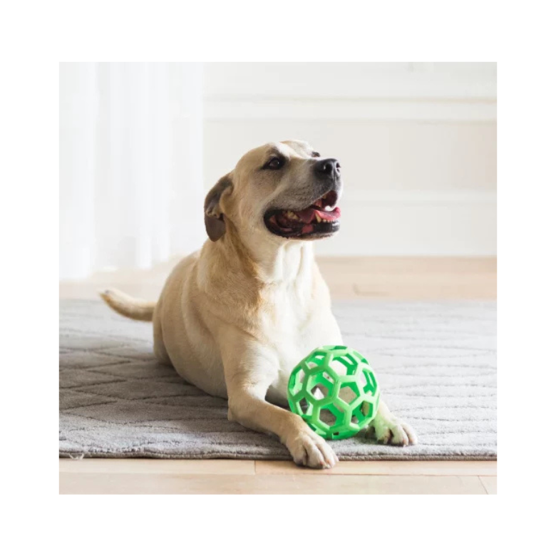 Hol-ee es una pelota divertida y versátil para perros con una gran durabilidad. El material es fuerte, bota y tiene una textura suave. El diseño abierto le permite rellenarlo de snack para tener horas de entretenimiento para su perro
