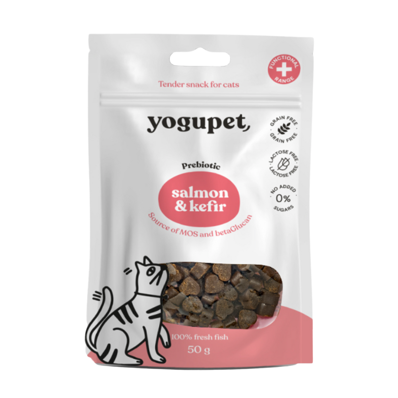 Pavo fresco 60%, almidón hidrolizado, salmón fresco 5%, pescado azul (5%), kéfir pasteurizado (sin lactosa) 4,98%, glicerina vegetal, producto de levadura 0,025%.