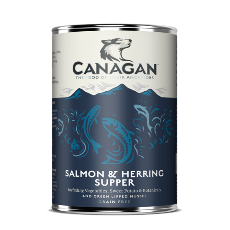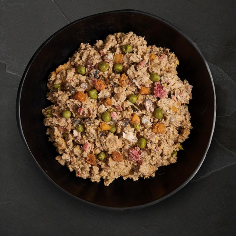 Salmón fresco (35%), arenque fresco con metilsulfonilmetano (30%), batata, zanahoria, guisantes, brócoli, minerales, mejillón de labio verde*, aceite de salmón, manzana, espinacas, algas, perejil, yuca, escaramujo, ortiga, olmo, caléndula, anís, menta, romero. *Fuente de glucosamina (100 mg/kg).