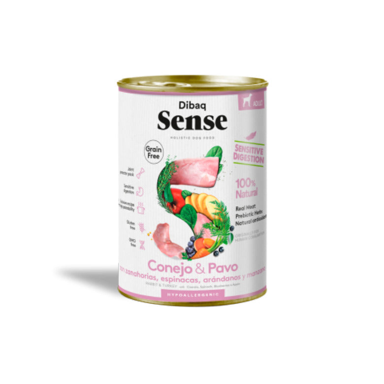 100% Natural Wet Food made with fresh Rabbit and Turkey meat for the most sensitive digestions of adult dogs of all breeds.