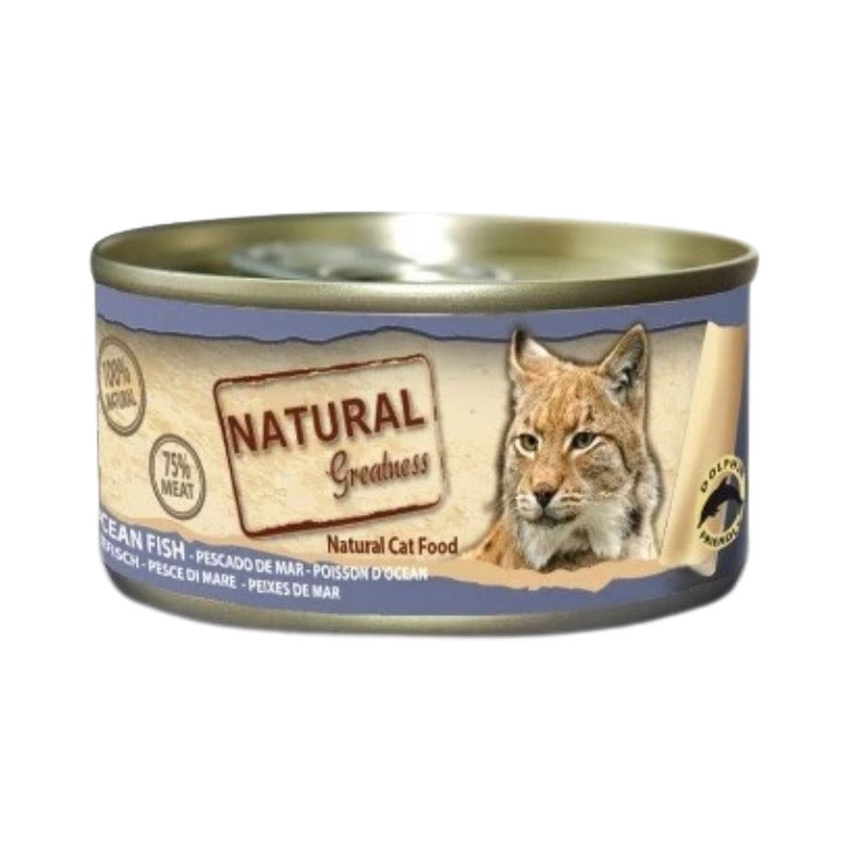 Natural Greatness SEA FISH is an excellent, ultra-premium, hypoallergenic complementary wet food ideally developed as a treat or reward for adult cats. This natural food, based on rich, high-quality, chopped mackerel and sea bream fillets, contains only the listed ingredients, with no additives, animal derivatives, by-products, or fillers.