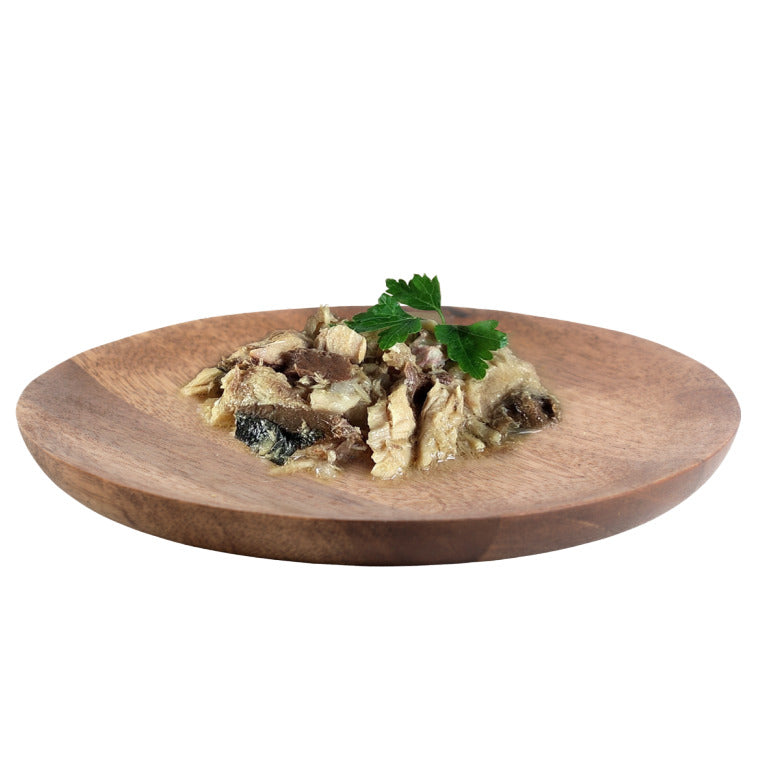 Composition: Mackerel (45%), Sea bream (30%), Fish stock (23%), Rice (1%), Maltodextrin (1%).