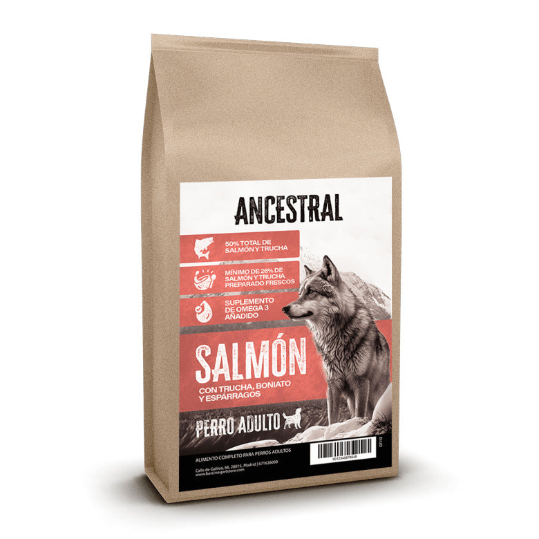 COMPOSITION: Salmon and Trout 50% (including Fresh Prepared Salmon and Trout 36%, Dehydrated Salmon 12% and Salmon Broth 2%), Sweet Potato (24%), Peas (9%), Potato, Beetroot Pulp, Flax Seeds, Omega 3 Supplement, Minerals, Asparagus (0.3%), Fructooligosaccharide (FOS, 96 mg/kg), Mannanoligosaccharides (MOS, 24 mg/kg)