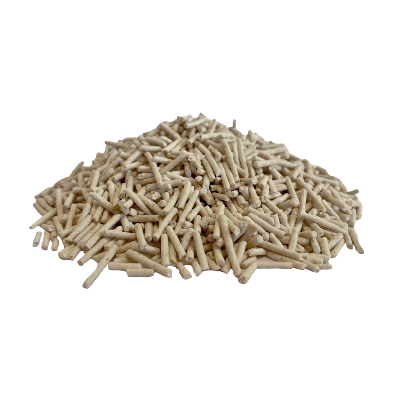 Recycled vegetable cat litter made from the recovery of plant derivatives from the food industry.