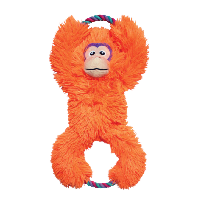 The KONG Tuggz Monkey toy is sized XL for extended tug-and-fling play sessions. The long body and rope ends are ideal for shaking and rolling while satisfying a dog's natural chewing needs. Its plush body, two squeakers, and crinkle arms stimulate play and shake instincts. The cozy plush makes these friends irresistibly adorable to hang out with, making them perfect for indoor play.