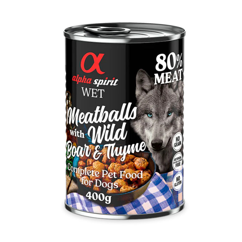 Carne 80% (carne de pollo 40%, carne de cerdo 30%, carne de jabalí 10%), almidón de patata, zanahoria, calabaza, acelga, pimiento rojo, gelatina, fibra de remolacha, tomillo (0,5%) y minerales.