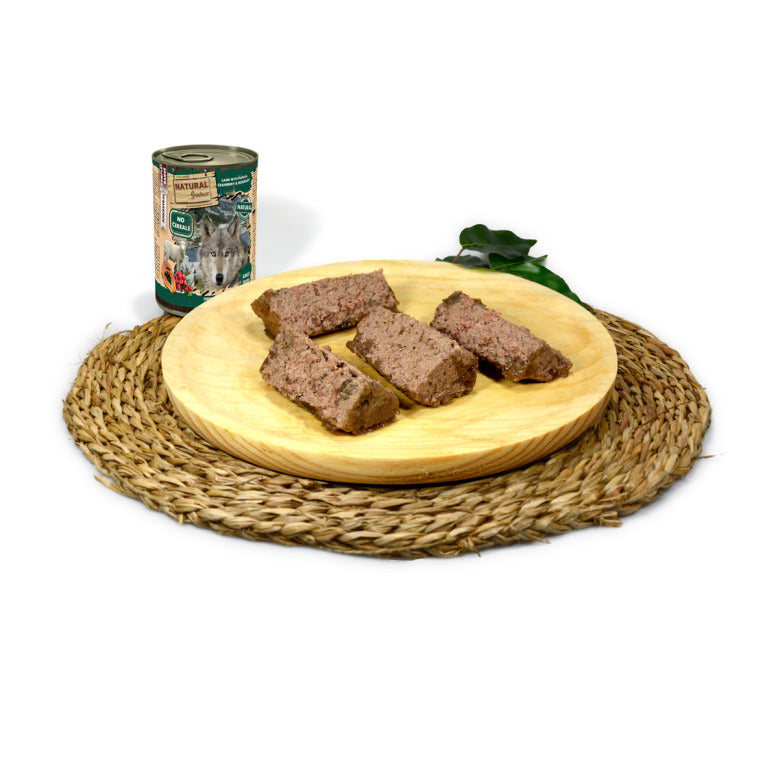 Natural Greatness CORDERO CON PAPAYA, ARÁNDANOS Y ROMERO es una excelente receta húmeda completa, ultra premium e hipoalergénica, formulada sin cereales y desarrollada idealmente para perros adultos. Este alimento húmedo posee una alta palatabilidad gracias a la gran calidad de sus ingredientes, entre los que destaca el cordero como única fuente de proteína animal, una carne deliciosa para los paladares más exigentes. Además, esta rica carne va acompañada de superalimentos tales como arándanos, papaya y romero, que mejoran el sabor y aportan vitaminas y minerales extra para completar esta rica y nutritiva receta de alimento húmedo para perros adultos.