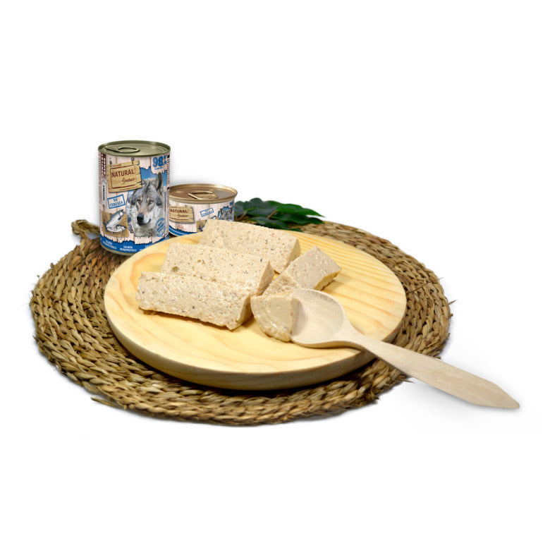 Natural Greatness RECETA MONOPROTEICA DE SALMÓN es una excelente receta húmeda completa, ultra premium, monoproteica e hipoalergénica, formulada sin cereales y desarrollada idealmente para perros adultos con sensibilidad a carnes más comunes como el pollo o el pavo. Este alimento húmedo contiene un 98% de carne de salmón de alta calidad, siendo el salmón la única fuente de proteína animal presente en la receta. Es un alimento ideal para una dieta de exclusión, facilitando la detección de posibles intolerancias alimentarias o alergénicas.
