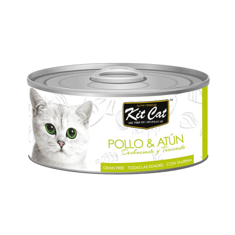 Lata de comida húmeda complementaria para gatos con ingredientes 100% naturales de Pollo con Atún. Sin cereales, sin gluten y sin subproductos. Receta elaborada con las mejores materias primas y con los nutrientes esenciales para que tu gato tenga una alimentación de calidad para su óptimo desarrollo.