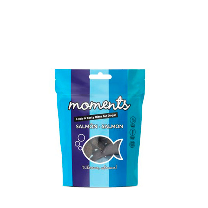 Moments Salmón son fantásticos snacks con divertidas formas y sabores. Son ricos en DHA y libres de grano y de transgénicos.