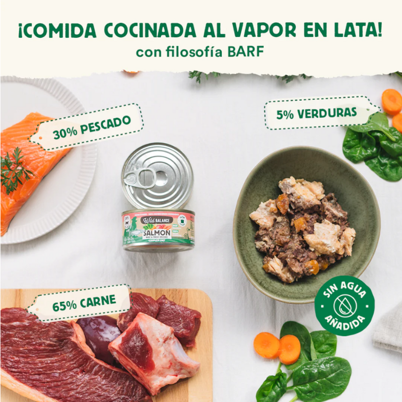 Lata Wild Balance Gato Salmón y Ternera con Verduras 120gr Filosofía BARF